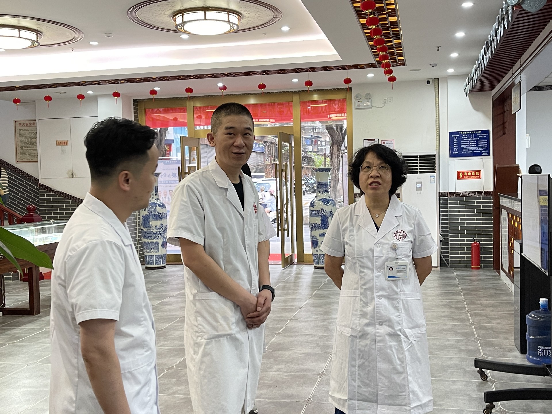 在会诊现场,陈爱玲主任深入广州御和堂中医外治中心,为接受中医动力温控、经络埋植等外治治疗的慢病患者进行指导。她细致观察每位患者的治疗反应,针对不同体质和病症特点,一对一调整经络埋植穴位和温控给药方案,同时叮嘱治疗期间的饮食宜忌和起居注意事项,使得患者的治疗更为全面完善。